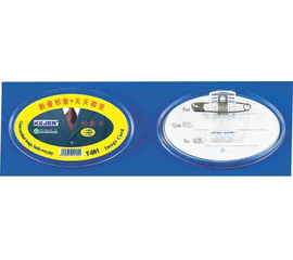 Din plastic flexibil cu ac de siguranta si clip metalic pentru prindere usoara pe textile. Se livreaza cu un carton alb pentru inscrisuri. Culoare: transparent. Dimensiuni (l x L): 55 x 90 mm.  Ambalare: 50 buc. / cutie.