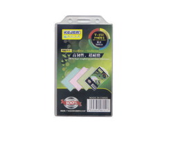 Confectionat din PVC flexibil, cu margine gri. Dimensiune: 85 x 55 mm. Folosit pentru legitimatii. Format: orizontal. Ambalare: 10 buc./set.