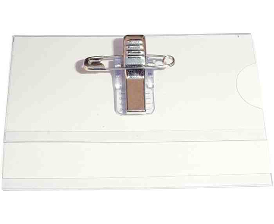 - Din plastic flexibil cu ac de siguranta si clip metalic pentru prindere usoara pe textile.