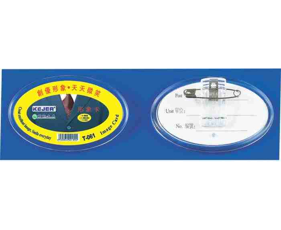 Ecuson oval din plastic, pentru nume, 68 x 42mm, KEJEA - transparent