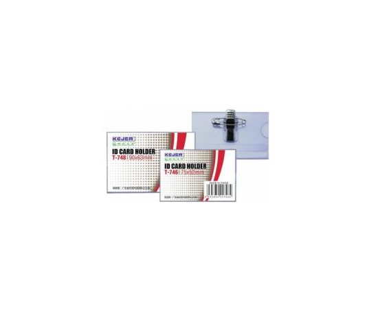 Ecuson PVC, pentru nume, cu ac si clip, 70 x 42mm, KEJEA - transparent