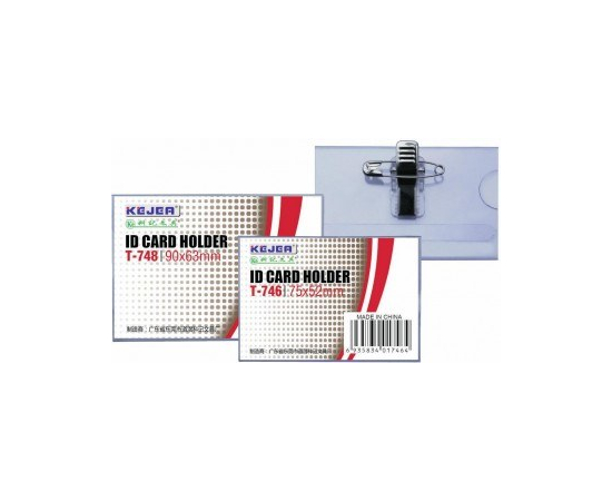 Ecuson PVC, pentru nume, cu ac si clip, 90 x 63mm, KEJEA - transparent