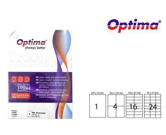 Etichete color autoadezive 16/A4, 105 x 37 mm, 100 coli/top, Optima - rosu