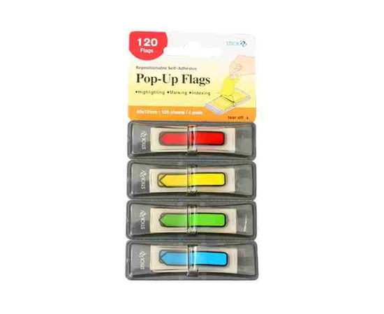 Film index autoadeziv 45 x 12 mm, 4 x 30 file/set, Stick"n Pop-up (cu dispenser) - sageata - V/G/R/A