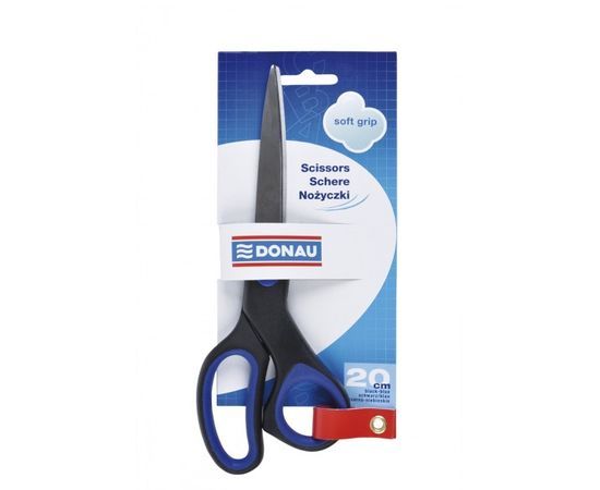 Foarfeca otel, ergonomica, 20cm, cu rubber grip, DONAU Soft Grip - maner albastru