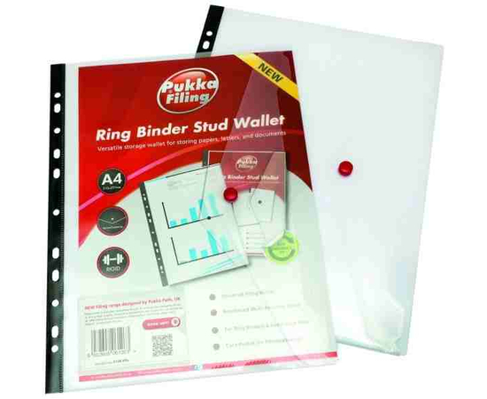 Folie protectie documente A4, cu clapa laterala cu capsa, 5 buc/set, PUKKA - transparent