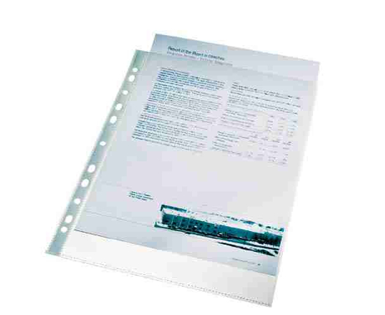 Folie transparenta cu 11 perforatii standard pentru indosariere.