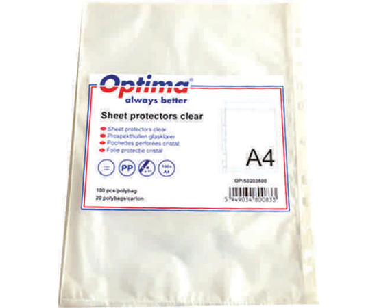 Folie protectie pentru documente A4, 40 microni, 100/set, Optima - cristal