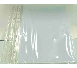 Folie transparenta cu 11 perforatii standard pentru indosariere. Deschidere: partea superioara.  Format A4 Grosime : 40 microni.  Culoare : cristal.