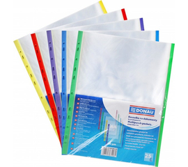 Folie transparenta cristal de 90 microni cu perforatii pentru indosariere.  Cu margine color( asortate) pentru o organizare mai buna. Ambalare: 10 buc/set.