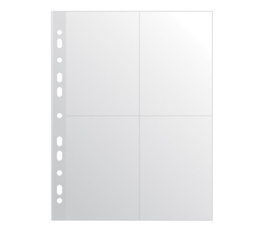 Fabricat din polipropilena cu o grosime de 60 microni Margine intarita special Pentru 4 sau 8 fotografii (fata/verso), cu dimensiunea de 105x150mm 11 perforatii standard pentru arhivare in biblioraft sau dosar. Dimensiuni: 235x310mm Culoare: transparent cristal