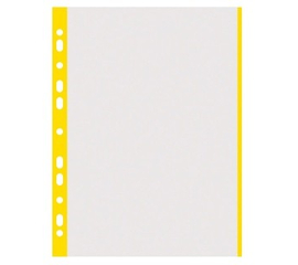 Folie transparenta cristal de 90 microni cu perforatii pentru indosariere.  Cu margine color( galben) pentru o organizare mai buna. Ambalare: 10 buc/set.