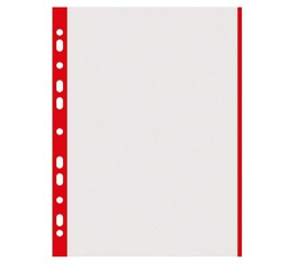 Folie transparenta cristal de 90 microni cu perforatii pentru indosariere. Cu margine color( rosu) pentru o organizare mai buna. Ambalare: 10 buc/set.