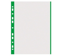 Folie transparenta cristal de 90 microni cu perforatii pentru indosariere.  Cu margine color( verde) pentru o organizare mai buna. Ambalare: 10 buc/set.