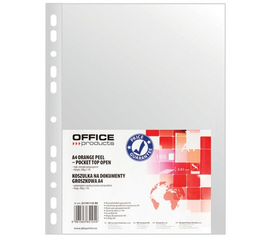 Fabricat din polipropilena moale, 90 microni. Suprafata coaja de portocala. Deschidere in partea superioara. Format A4. Antistatic 11 perforatii pentru indosariere. Dimensiuni: 230x300 mm. 50 folii/set. Culoare: transprent.