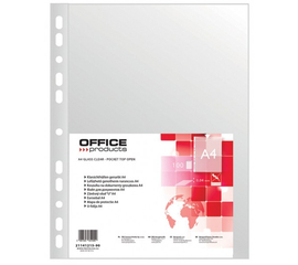 Fabricat din polipropilena moale, 30 microni. Suprafata coaja de portocala. Deschidere in partea superioara. 11 perforatii pentru indosariere. Dimensiuni: 227x302 mm. 100 folii/set. Culoare: transparent.