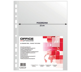 Folie transparenta cu 11 perforatii standard pentru indosariere. Deschidere partea superioara. Mai lata cu 10 mm pentru o capacitate mai mare.  Format A4 extrawide.  Grosime : 60 microni. Culoare : transparent.