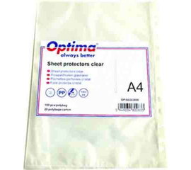 Folie protectie pentru documente A4, 40 microni, 100/set, Optima - transparent