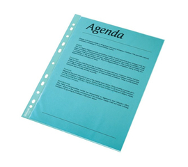 Folie transparenta din polipropilena (PP) cu perforatii standard pentru indosariere. Deschidere : lateral dreapta cu clapa. Grosime: 90 microni. Ambalare: 10 buc./set.
