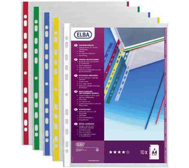 Folie protectie documente, cu margine color, 10folii/set, ELBA - margine culori asortate