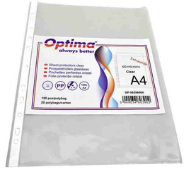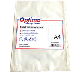 Folie protectie pentru documente A4, 40 microni, 100/set, Optima - cristal