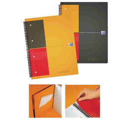 Caiet cu spirala metalica. Hartie alba fara clor de 70 gr/mp prevazuta cu microperforatii pentru desprinderea usoara a filelor si 4 perforatii pentru incopciere. Coperta fata din polipropilena, coperta spate din carton rigid. Numar de file: 80.