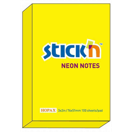 Notes autoadeziv 76 x 51 mm, 100 file, Stick"n - galben neon