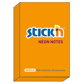 Notes autoadeziv 76 x 51 mm, 100 file, Stick"n - portocaliu neon