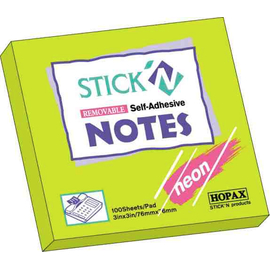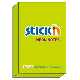 Notes autoadeziv 76 x 51 mm, 100 file, Stick"n - verde neon