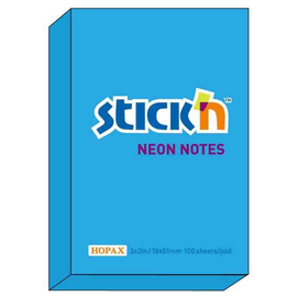 Notes autoadeziv 76 x 51 mm, 100 file, Stick"n - albastru neon