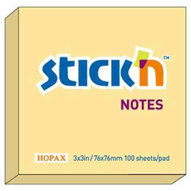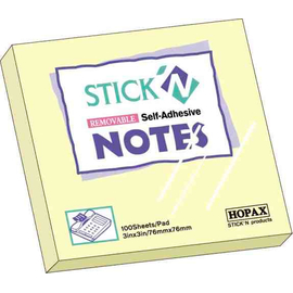 Notes autoadeziv 76 x 76 mm, 100 file, Stick"n - galben pastel