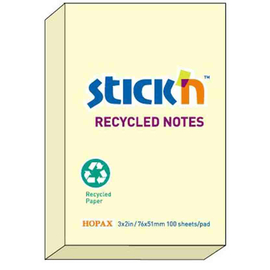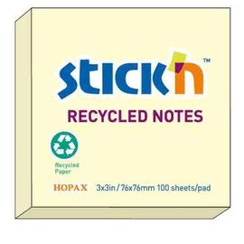 Notes autoadeziv 76 x 51 mm, 100 file, Stick"n - galben pastel - hartie reciclata