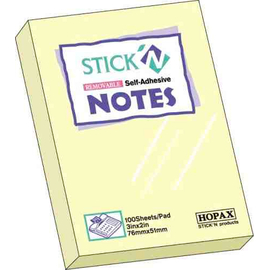 Notes autoadeziv 76 x 51 mm, 100 file, Stick"n - galben pastel