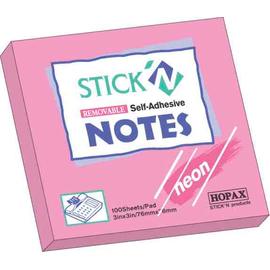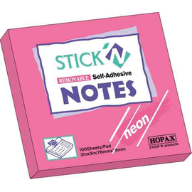 Notes autoadeziv 76 x 51 mm, 100 file, Stick"n - magenta neon