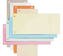 Din carton color de 190 gr/mp de forma dreptunghiulara. Ideale pentru separarea documentelor in biblioraft. Dimensiuni: 240 x 105 mm. Ambalare: 100 file/set.