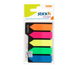 Stick index plastic transparent color 42 x 12 mm, 5 x 25 file/set, Stick"n - 5 culori neon - sageata