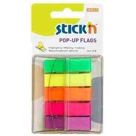 Film index autoadeziv 45 x 12 mm, 5 x 40 file/set, Stick"n Pop-up (cu dispenser) - 5 culori fluorescente
