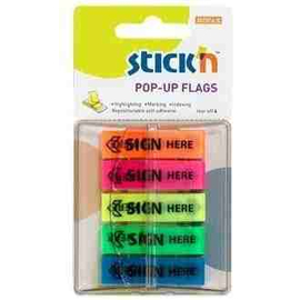 Film index autoadeziv 45 x 12 mm, 5 x 30 file/set, Stick"n Pop-up (sign here) - 5 culori fluorescente