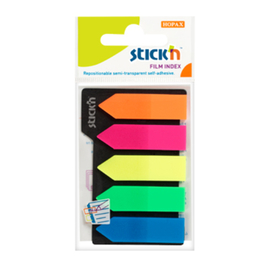 Stick index plastic transparent color 42 x 12 mm, 5 x 25 file/set, Stick"n - 5 culori neon - sageata
