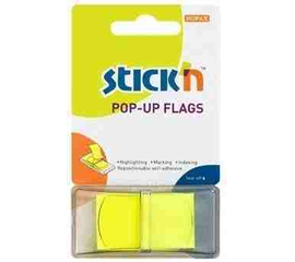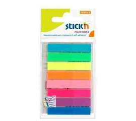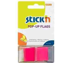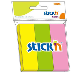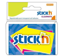 Adera la orice tip de suprafata, repozitionabil.  Din plastic semi-transparent. Contine dispencer. Culori asortate neon.  Dimensiuni: 45 x 25 mm.  Nr. file/set: 50.  Ambalare: 24 set/cutie.