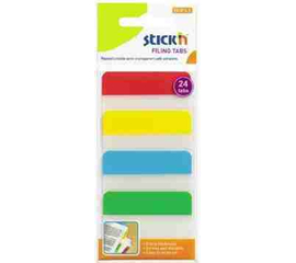 Folosite ca indexuri la separarea documentelor. Adera la orice tip de suprafata (adeziv repozitionabil). Dimensiuni: 76 x 14 mm. Numar file/set: 400 (4 x 100).  Ambalare: 24 set/cutie.