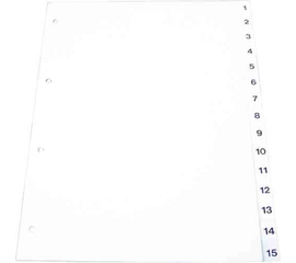 • Index din carton alb, format A4, tip A-Z, cu margini inscriptionate pe ambele parti, cu cifre sau litere in ordine crescatoare