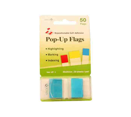 Adera la orice tip de suprafata, repozitionabil. Din plastic semi-transparent. Contine dispencer. Culoare transparent/albastru Dimensiuni: 45 x 25 mm. Nr. file/set: 50. Ambalare: 24 set/cutie.