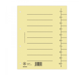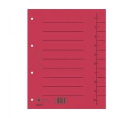 Realizate din carton preset, 250 gsm, obtinut prin reciclare. Index ce permite o ajustare rapida si usoara a distantierelor, in concordanta cu nevoile dumneavoastra.Index: 1-10. Perforatii: 4. Format: A4. Dimensiune separator: 235x300 mm. 100 bucati/ set. Culoare: rosu.