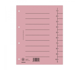 Realizate din carton preset, 250 gsm, obtinut prin reciclare. Index ce permite o ajustare rapida si usoara a distantierelor, in concordanta cu nevoile dumneavoastra. Index: 1-10. Perforatii: 4. Format: A4. Dimensiune separator: 235x300 mm. 100 bucati/ set. Culoare: roz...