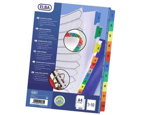 Index carton alb Mylar alfabetic A-Z, margine PP color, A4 XL, 170g/mp, ELBA