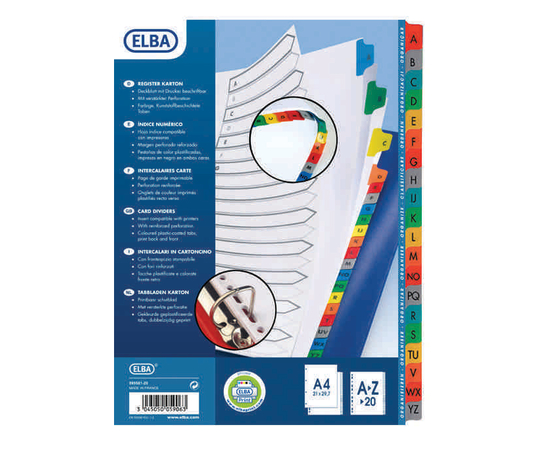 Index plastic color alfabetic A-Z, A4 XL, 120 microni, ELBA