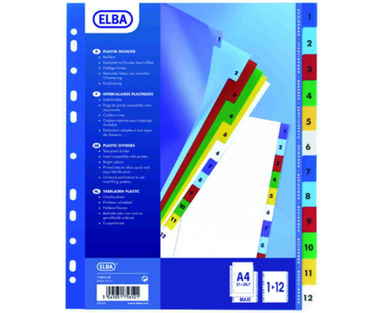 Index plastic color numeric 1-12, A4 XL, 120 microni, ELBA