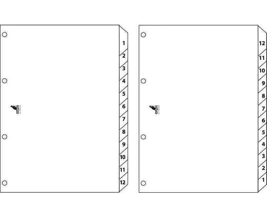 Index reversibil numeric 1-12/12-1, A4, carton alb 190g/mp, KANGARO Easy Move