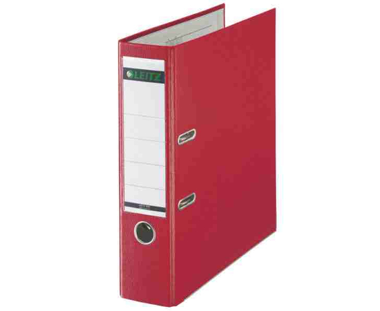 Biblioraft A4, plastifiat PP/paper, margine metalica 80 mm, LEITZ 180 - rosu